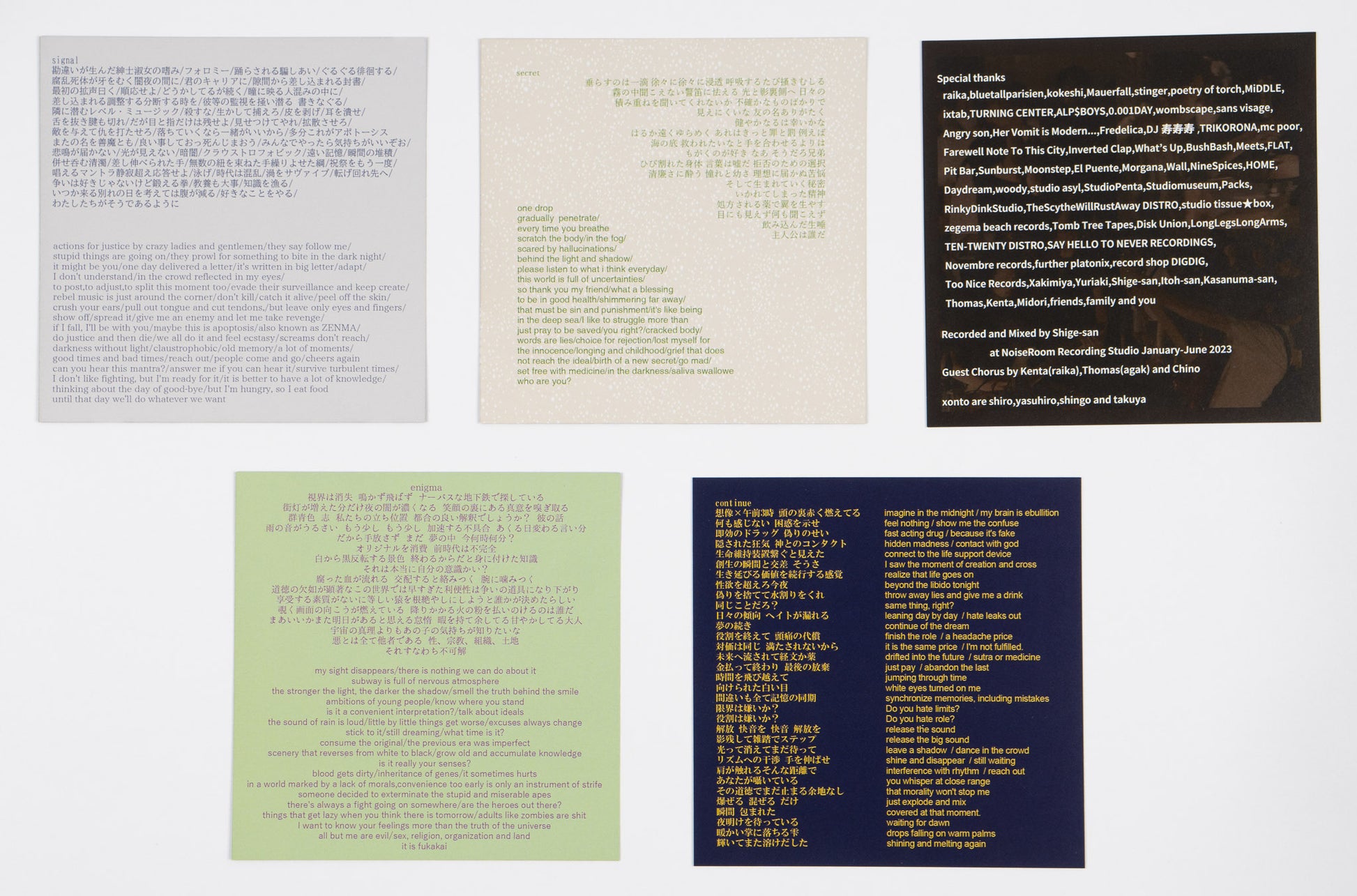 The second EP from Tokyo's Xonto. Dark, chaotic, screamo-adjacent. Featuring members of Tetola 93, Sto Cosi Cosi, Agak, Isolate.
